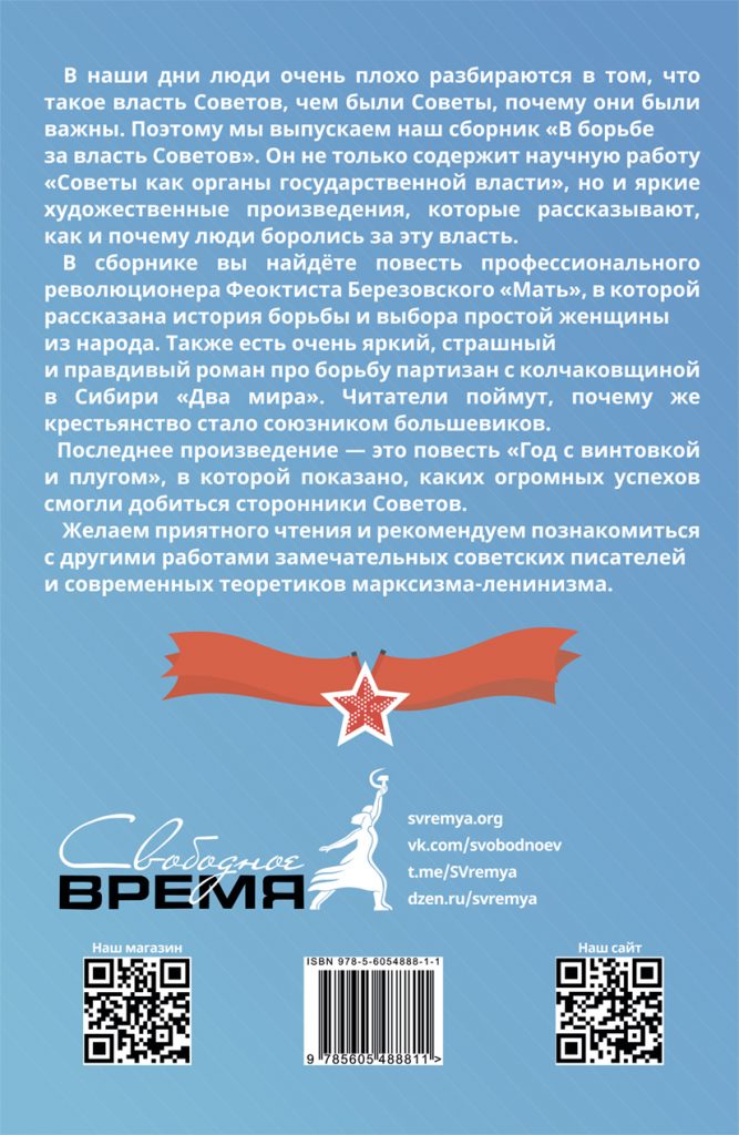 В наши дни люди очень плохо разбираются в том, что такое власть Советов, чем были Советы, почему они были важны. Поэтому мы выпускаем наш сборник «В борьбе за власть Советов». Он не только содержит научную работу «Советы как органы государственной власти», но и яркие художественные произведения, которые рассказывают, как и почему люди боролись за эту власть.